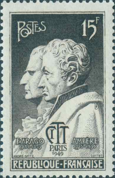 The man who tamed electricity with mathematics. You see his name every day in the unit of electric current: the ampere. The French were so proud that they put him on a stamp alongside his fellow scientist François Arago. In Ampère’s head, though, he’s probably thinking: “Without my formulas, your lights would go out.”
