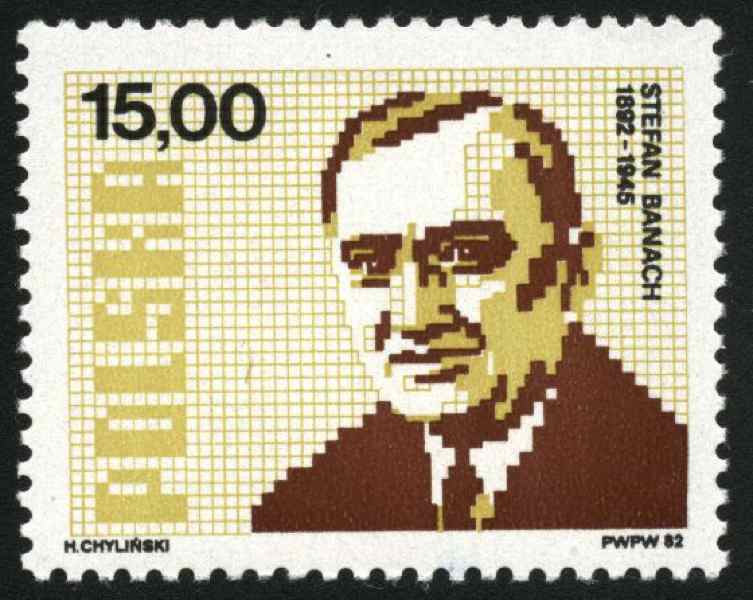 There’s a whole branch of math called functional analysis—basically a new universe for mathematicians. Banach was its founder. On the stamp he looks a bit pixelated, which is fitting: he spent his life working in “infinite-dimensional spaces.”