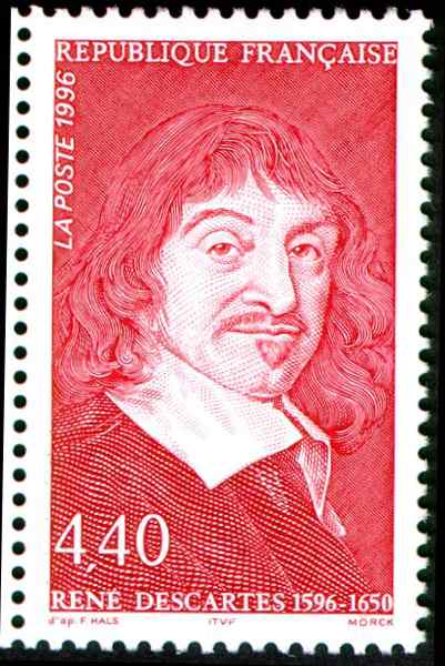 The man who brought mathematics and philosophy to the same coffee table. He said, “I think, therefore I am,” but what he really meant was, “I invented the coordinate system—go ahead, start plotting things.” On the stamp, that sly smile says it all: “I know the plan.”
